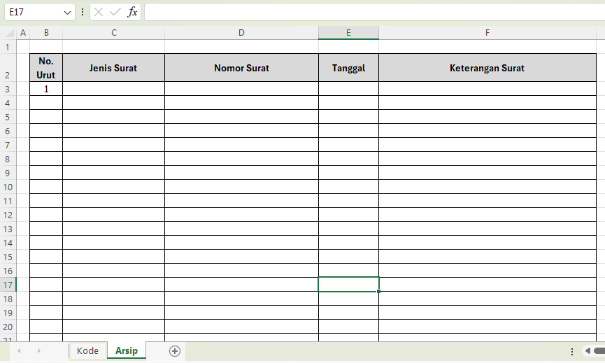 - Kolom C: Kode Surat