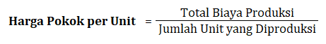 Setelah mendapatkan Total Biaya Produksi, Harga Pokok per Unit dihitung dengan rumus: