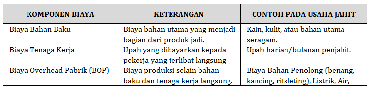 Secara umum, HPP dihitung dengan menjumlahkan tiga komponen biaya utama: