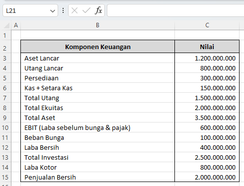 Dengan bantuan Excel, kamu dapat membuat perhitungan rasio ini secara otomatis dan dinamis hanya dengan memasukkan data keuangan.