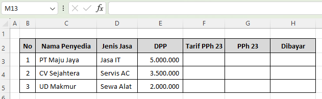 - Kolom F: Tarif PPh 23